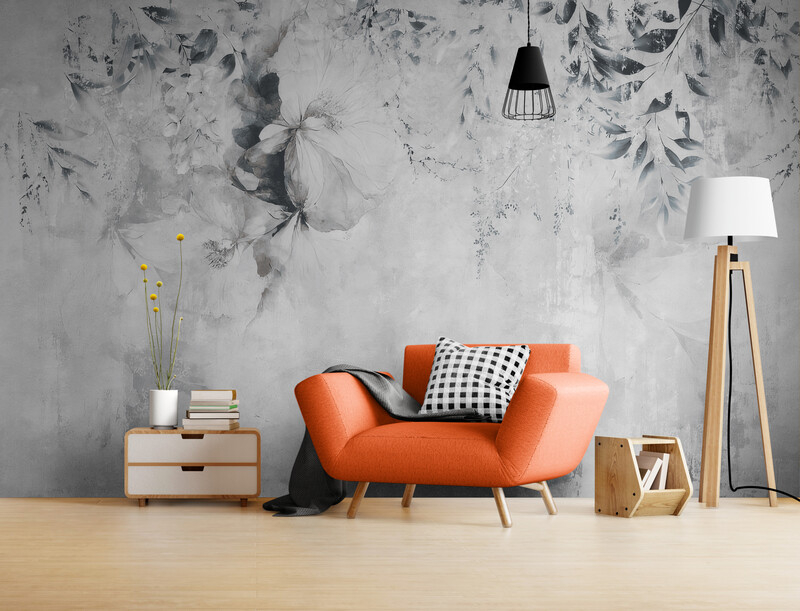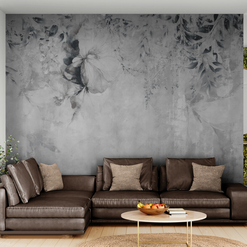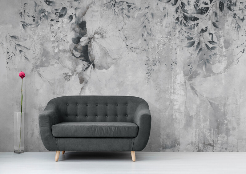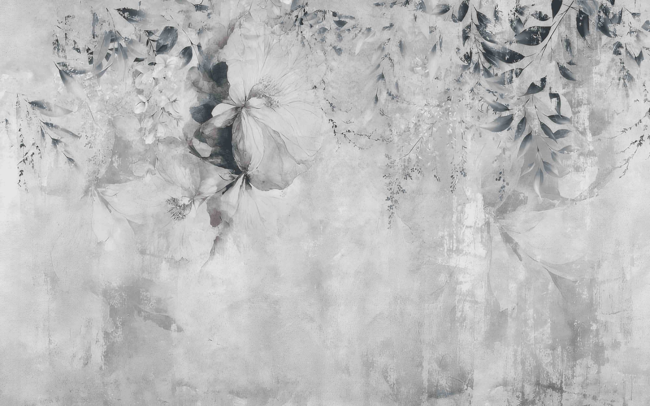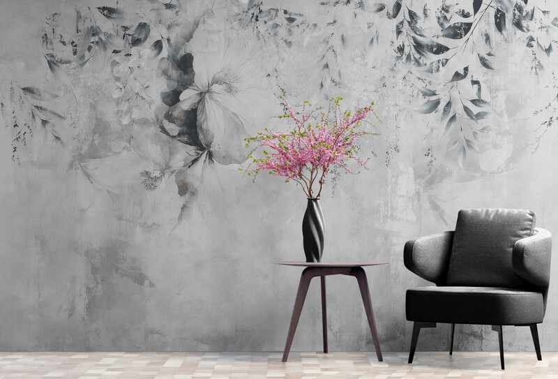 Abstrakcyjne fototapety w szarych tonach, fototapety winylowe i flizelinowe z kwiatami, bezszwowe fototapety „Abstrakcyjny ogród”