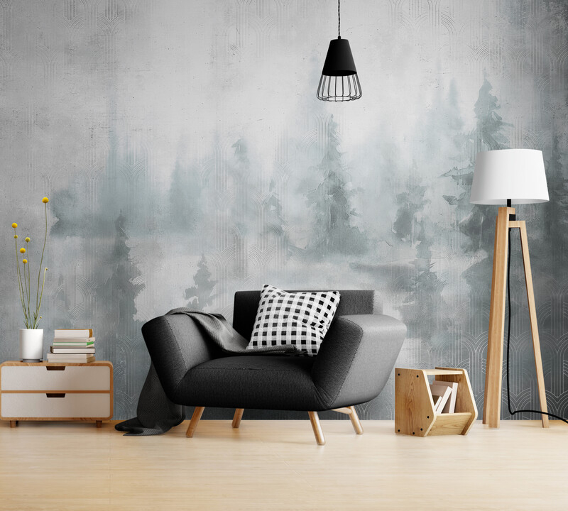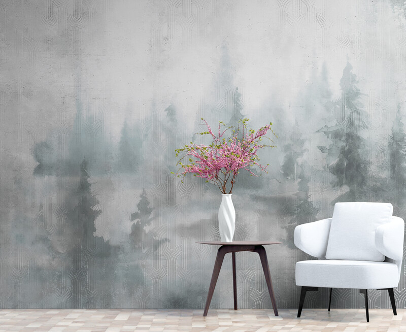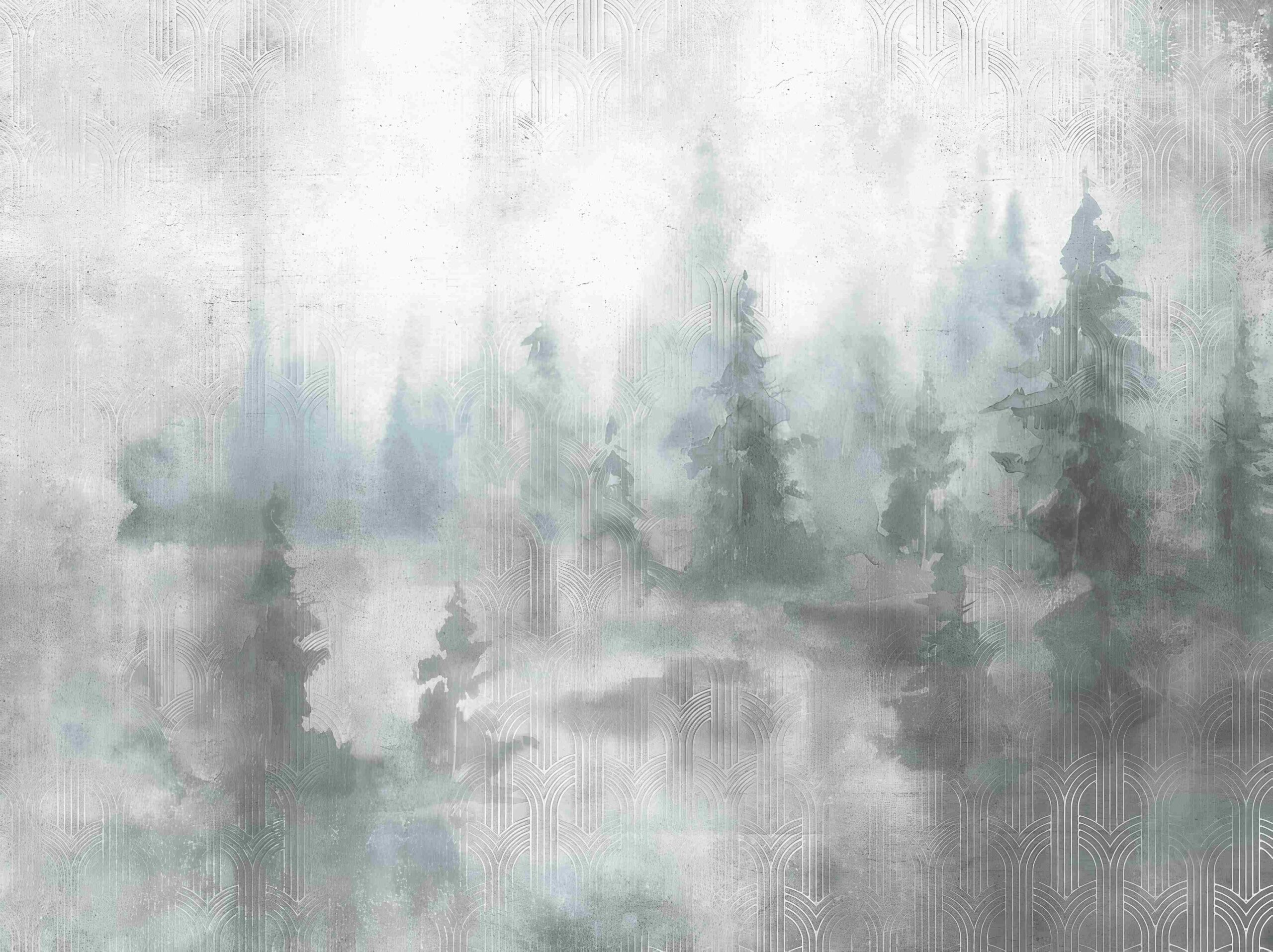 Abstrakcyjne fototapety z motywem lasu, neutralne fototapety w białych i szarych tonach „Duchowy las”