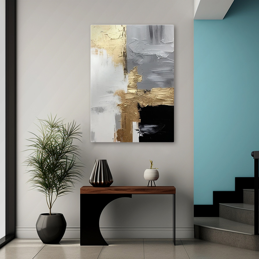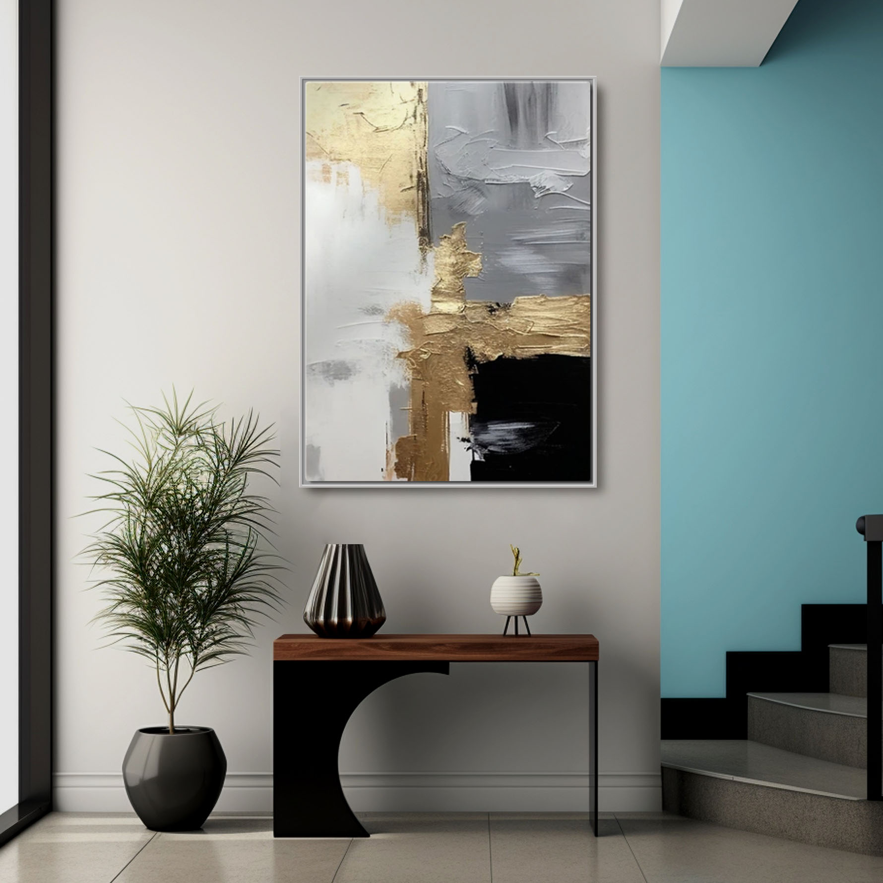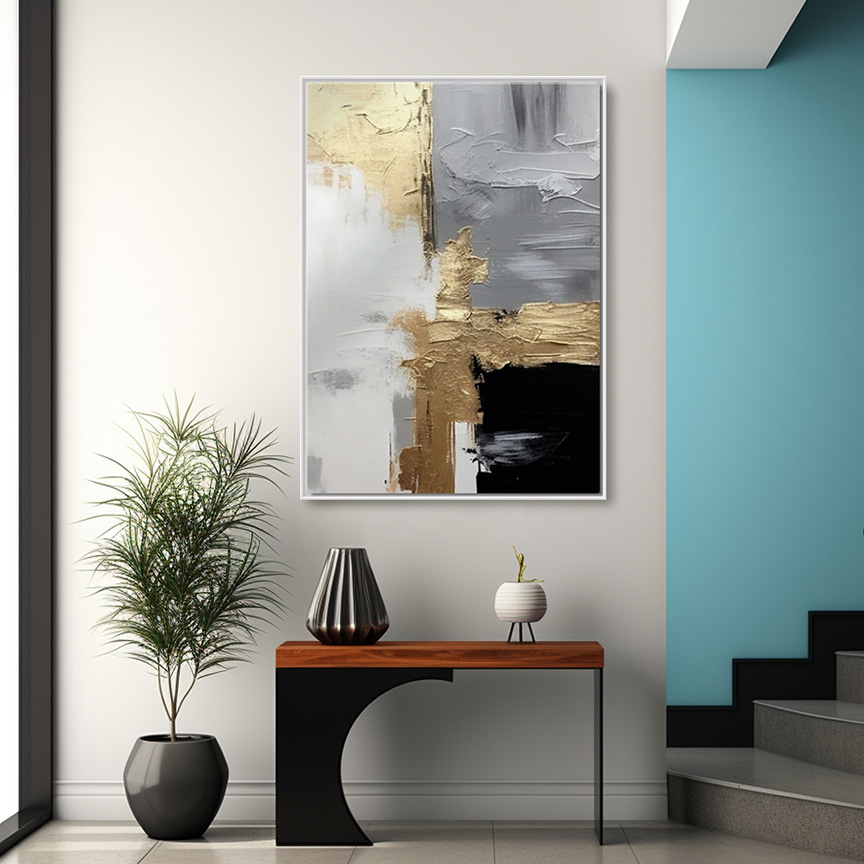 Abstrakcyjny obraz w ramie do domu i biura, obraz w ramie "Złoto, szarość i czerń"