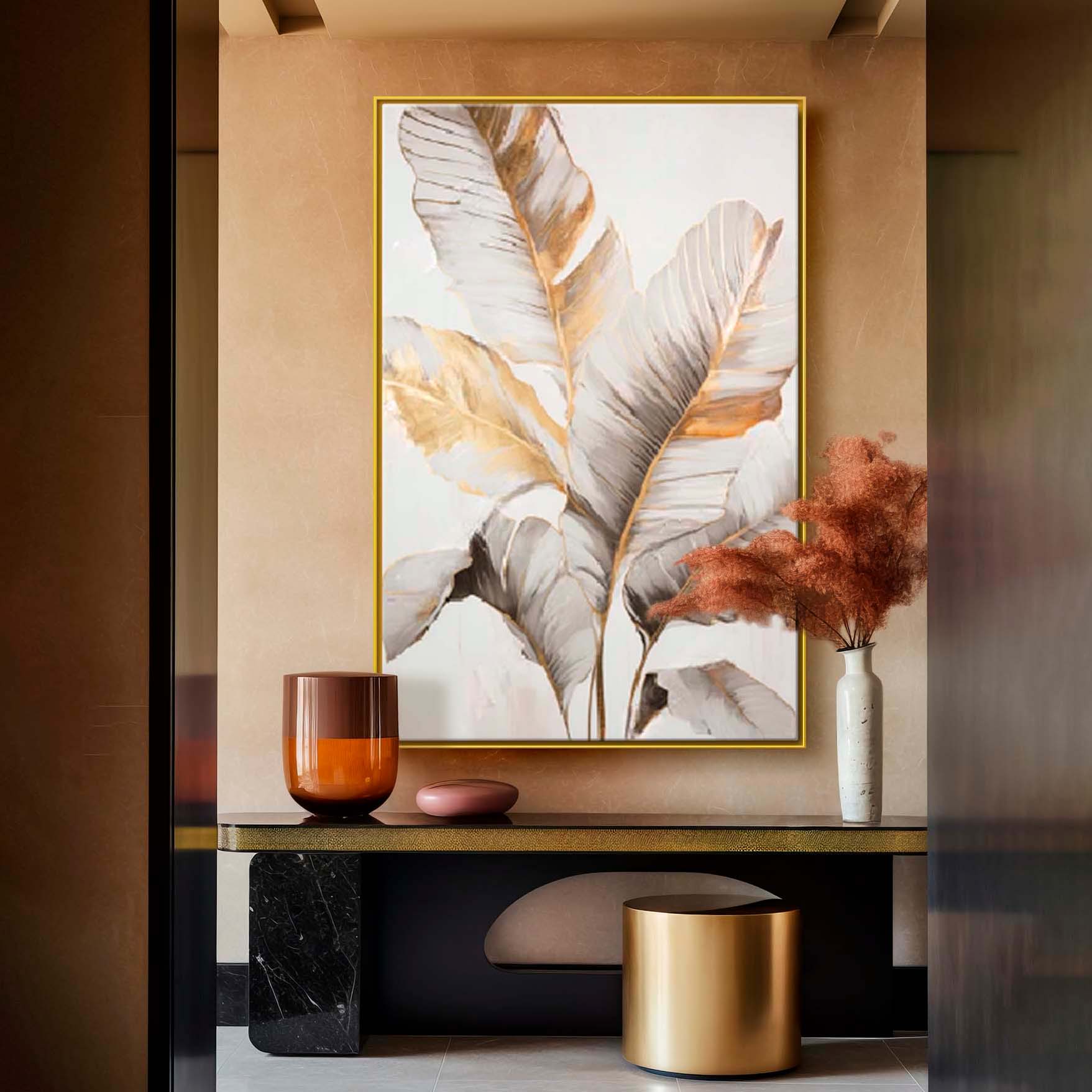 Abstrakcyjny obraz w ramie, obraz do wnętrza z ramą "Liść bananowca"