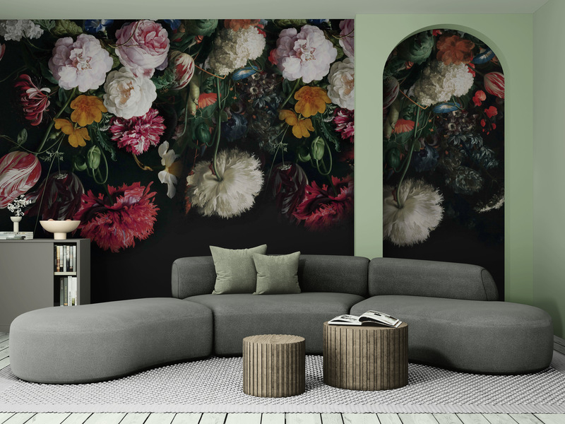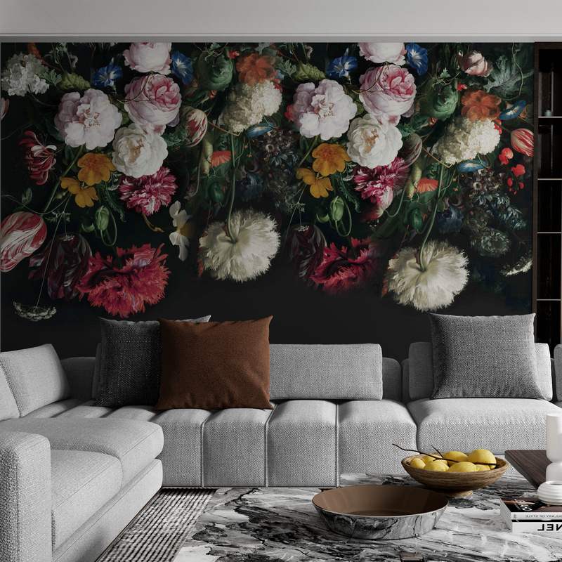 Ciemna fototapeta na płótnie z kwiatami "Ciemne Kwiaty"
