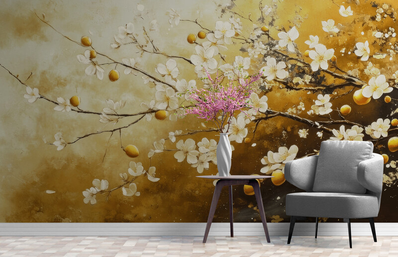 Fototapeta z kwiatami, bezszwowa fototapeta z efektem trójwymiarowym "Biała wiśnia"