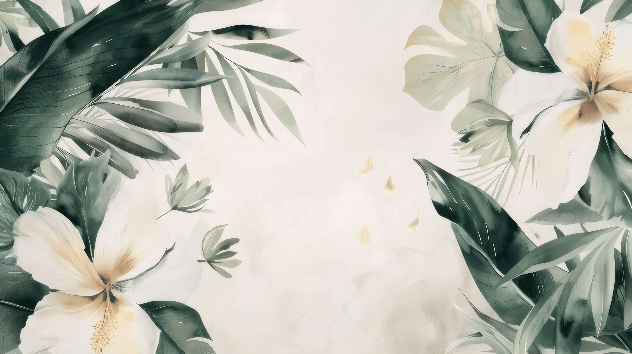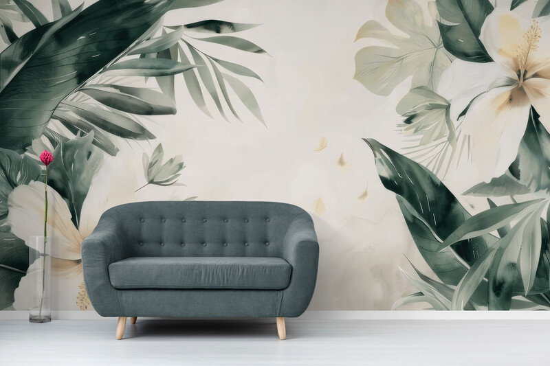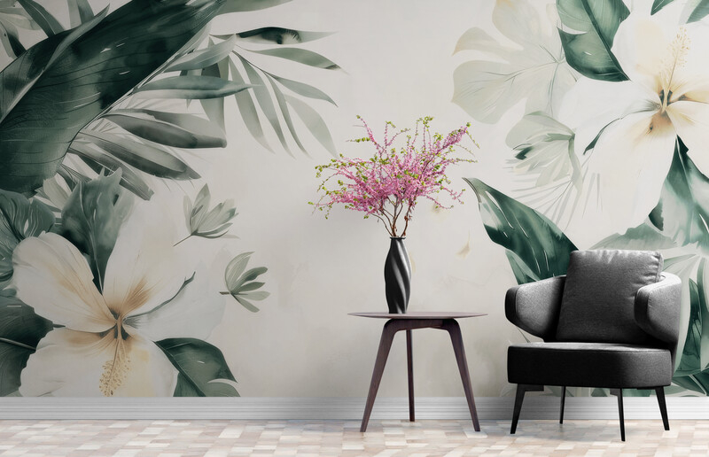 Fototapeta z nadrukiem kwiatowym, ekologiczna fototapeta z liśćmi "Liście i kwiaty"