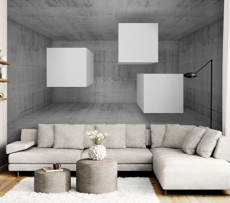 Fototapety z efektem głębi, fototapety 3D powiększające przestrzeń „Trzy białe sześciany”