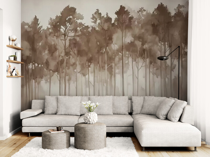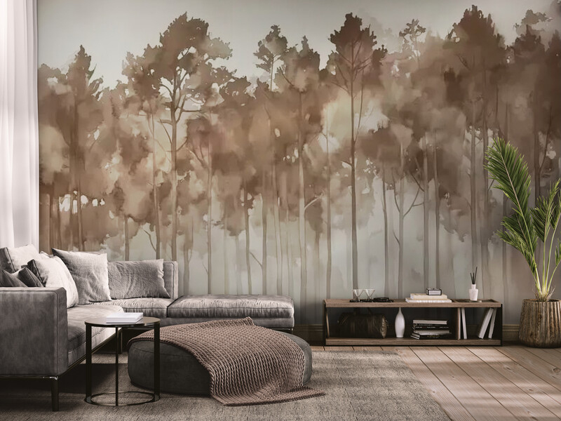 Fototapety z motywem lasu, abstrakcyjne neutralne fototapety, winylowe, flizelinowe, samoprzylepne „Akwarelowy las”