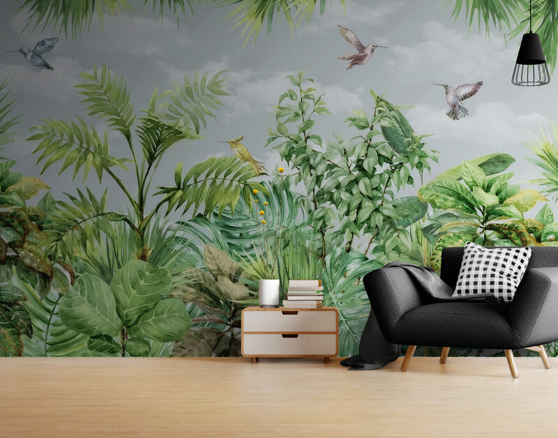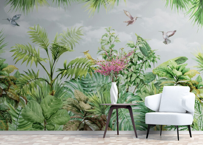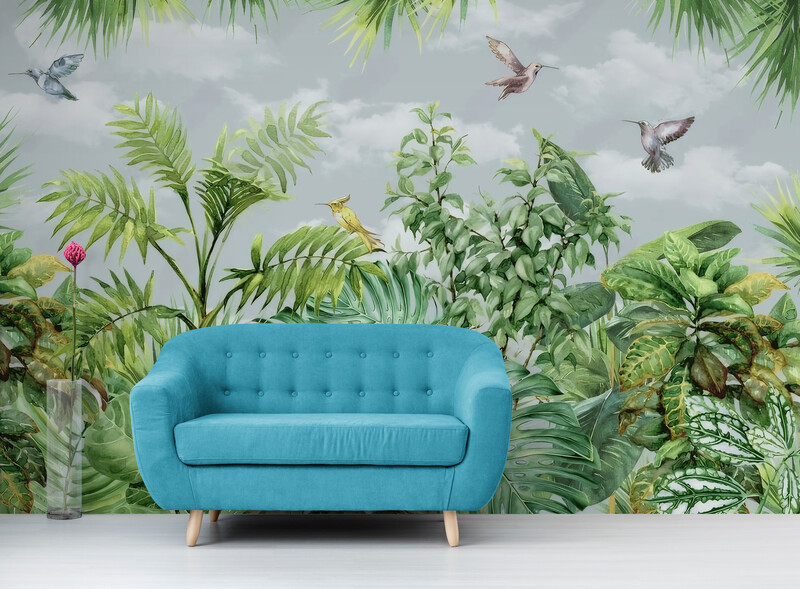 Fototapety z motywem tropikalnego lasu, bezszwowe fototapety z roślinami „Tropikalna fantazja”