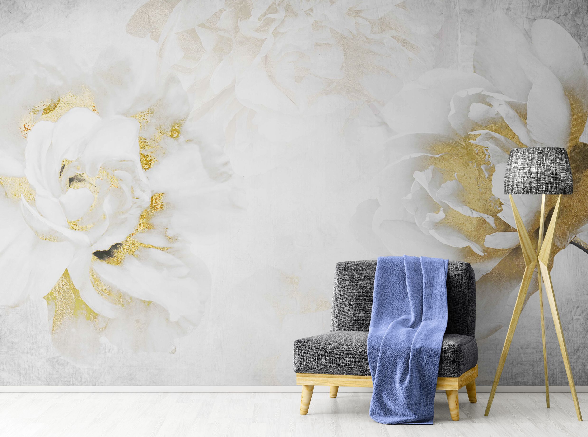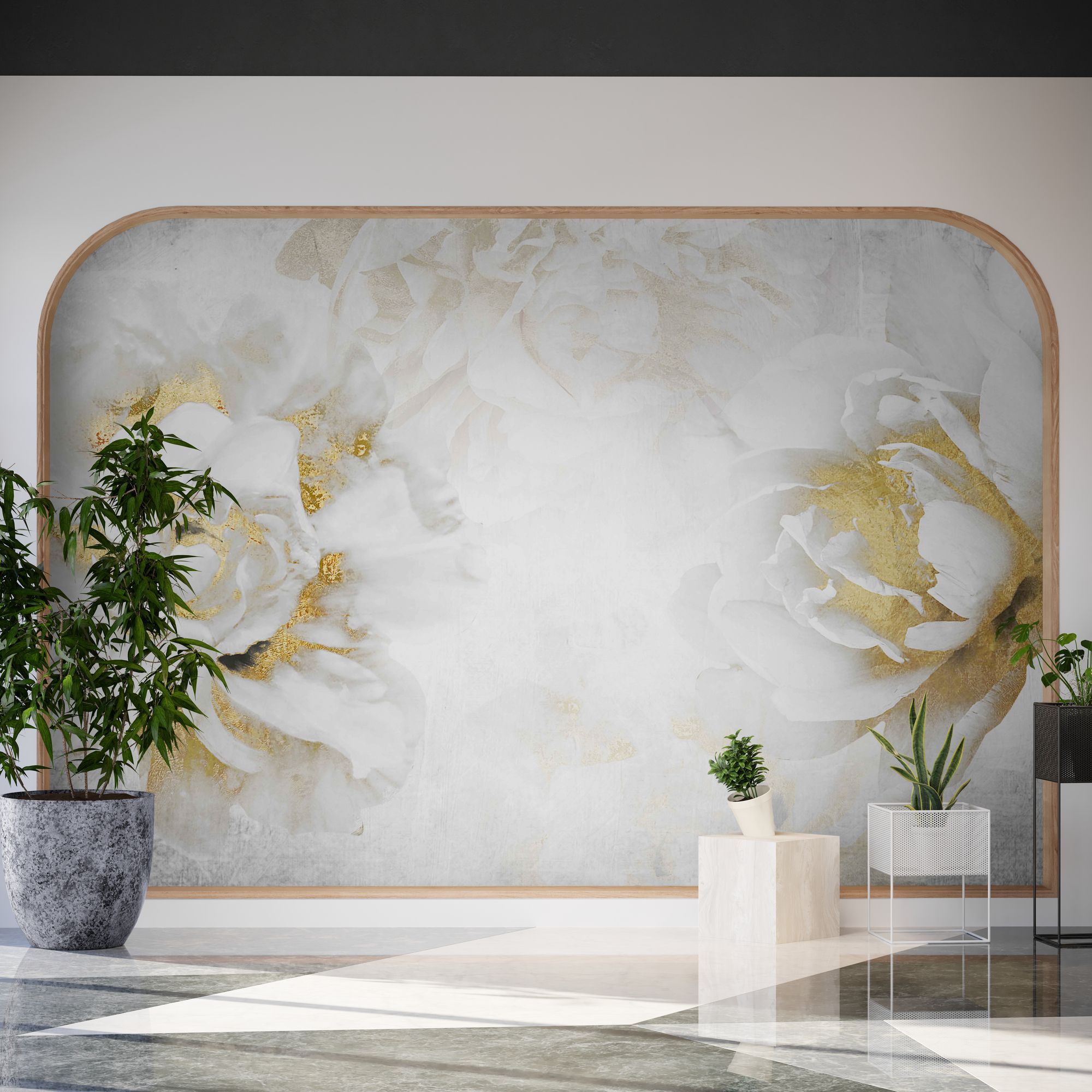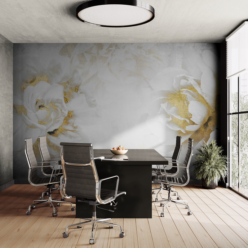 Fotoapeta Peonia, nowoczesna fototapeta w kolorze białym i złotym "Dwa Kwiaty"