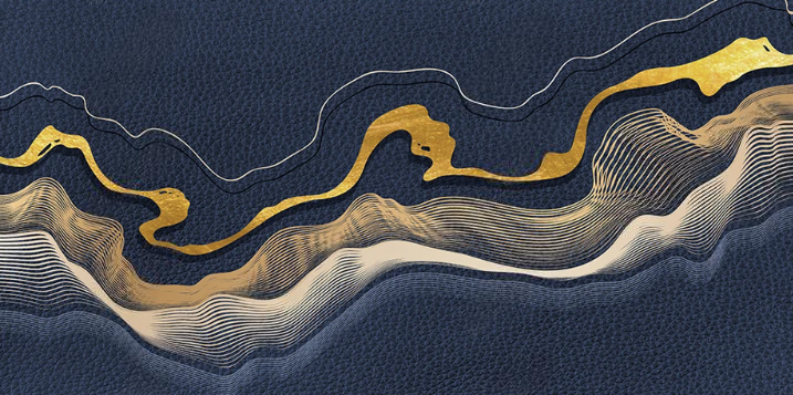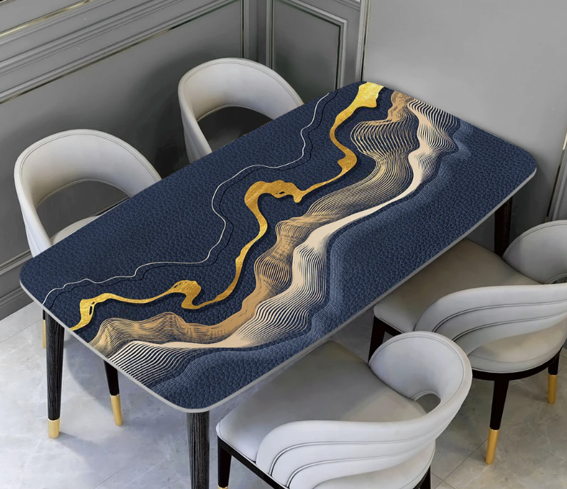 Wodoodporny nowoczesny obrus kuchenny i jadalniany, zabezpieczenie stołu z motywem „Golden‑blue waves”